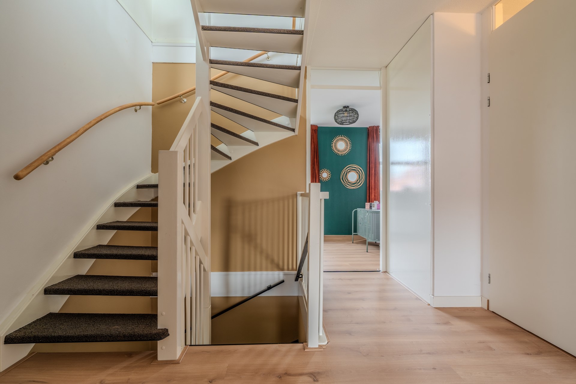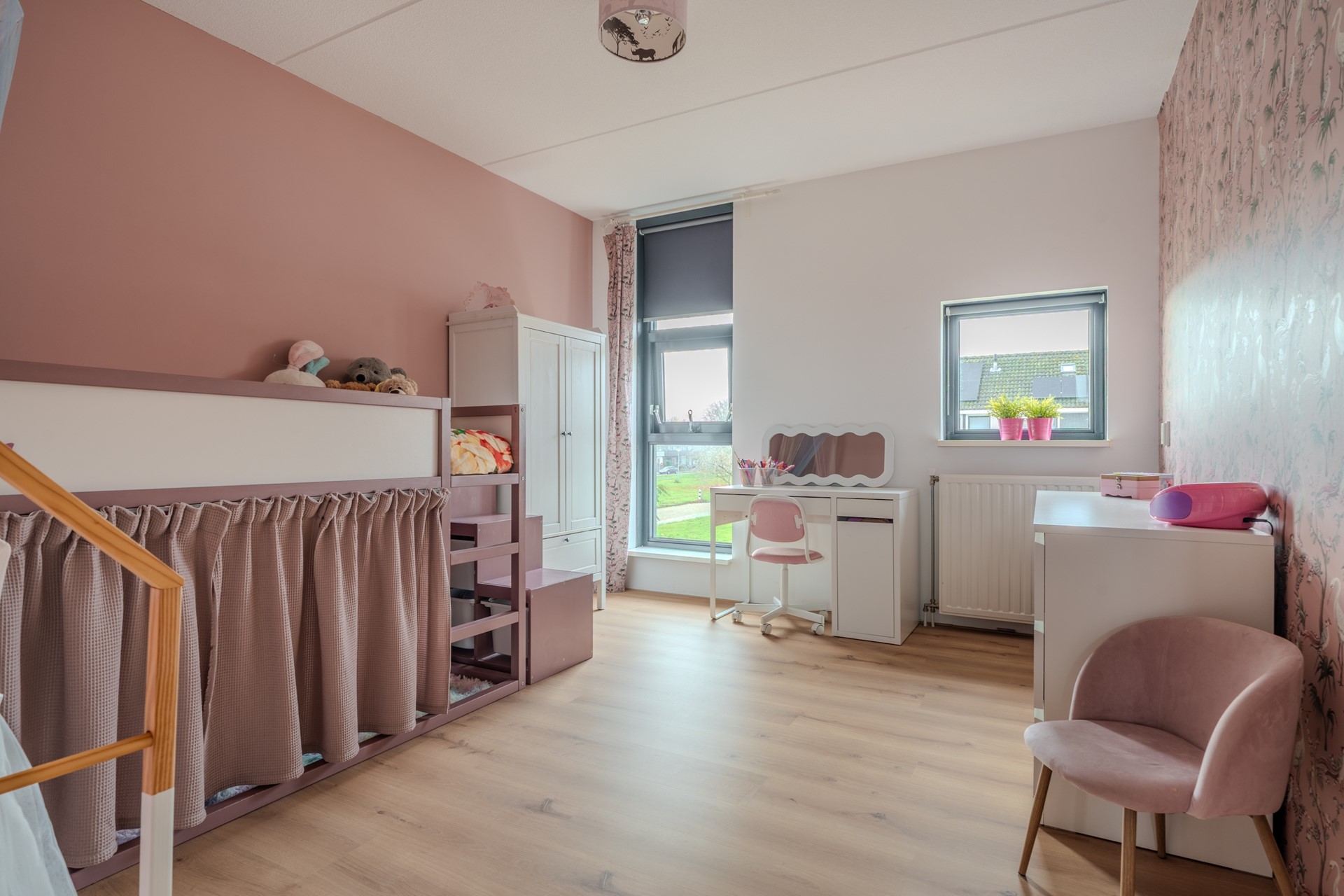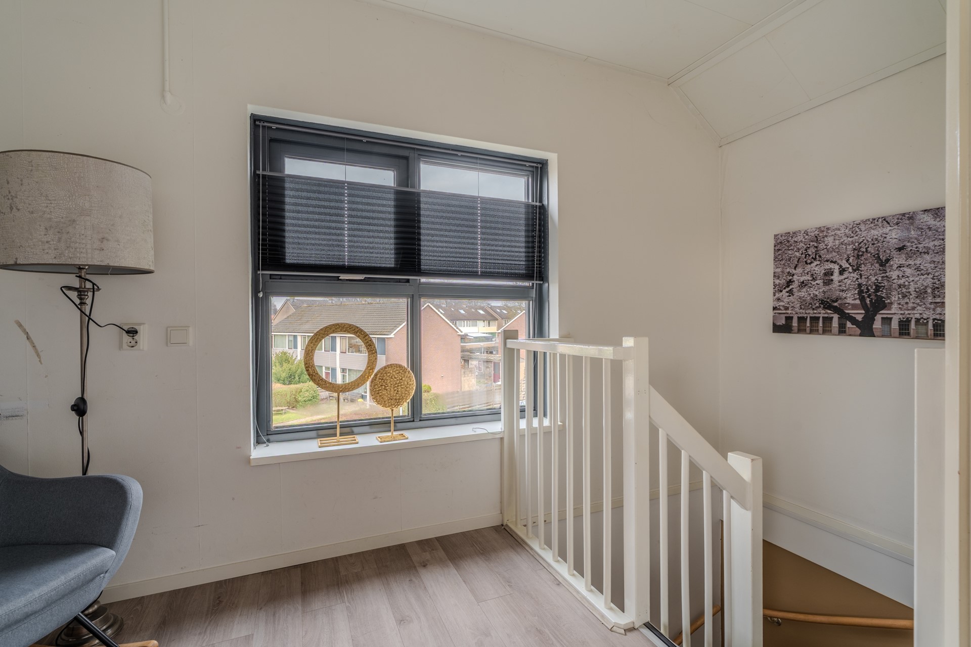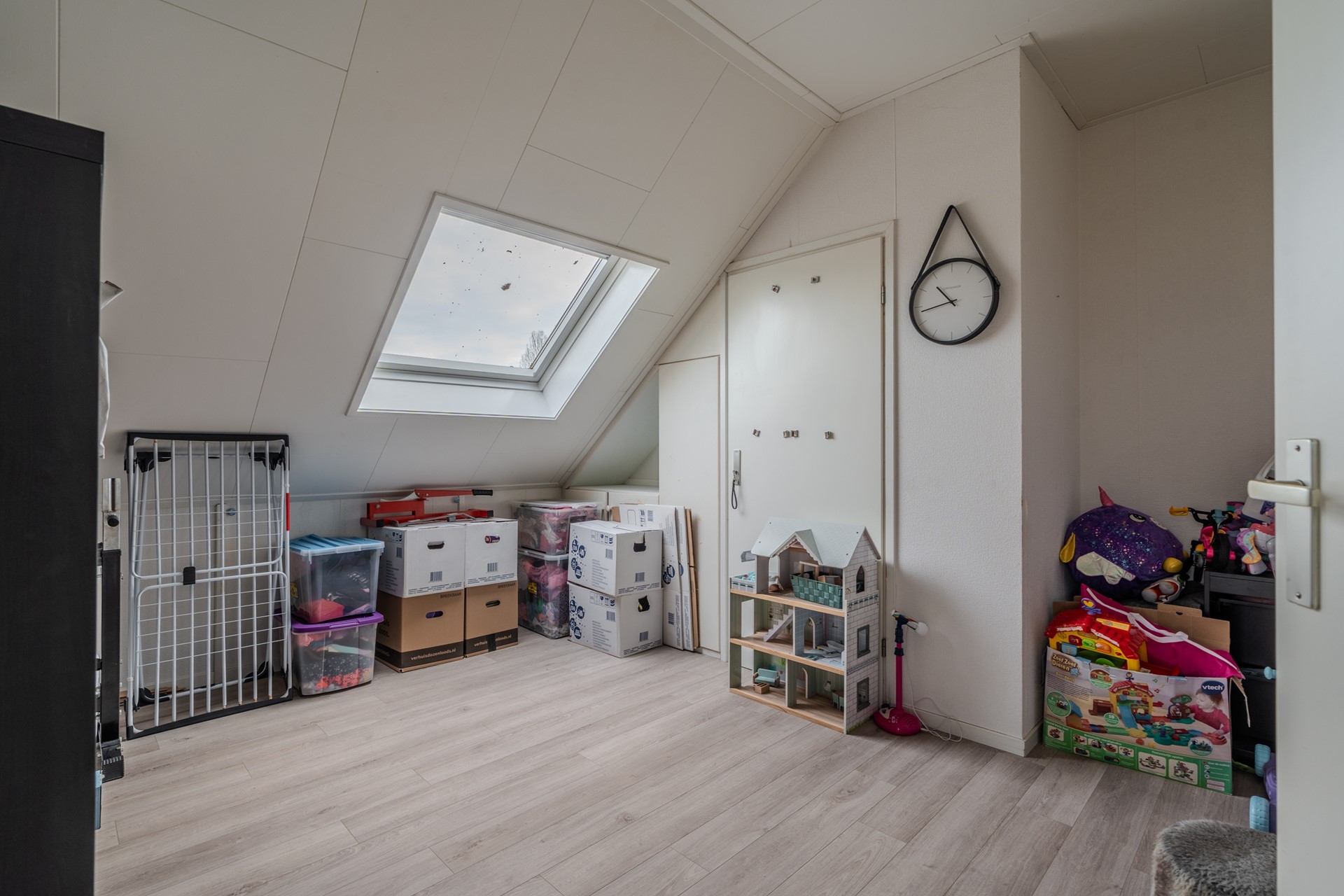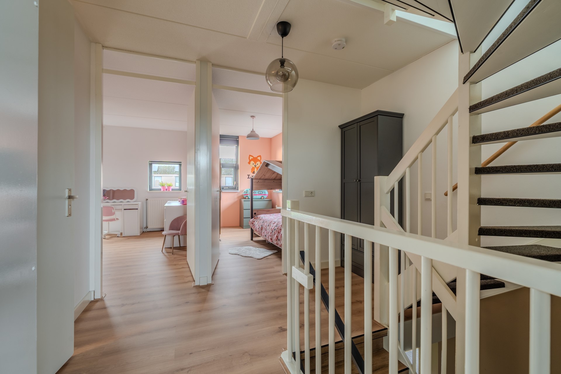 Op de eerste verdieping leidt de overloop, met vaste trap naar de tweede verdieping, naar drie slaapkamers en de badkamer. De slaapkamers hebben een oppervlakte van circa 8,8 m², 13,4 m² en 16 m². De badkamer is compleet uitgevoerd en voorzien van een inloopdouche, wastafel met meubel, designradiator en wandcloset.