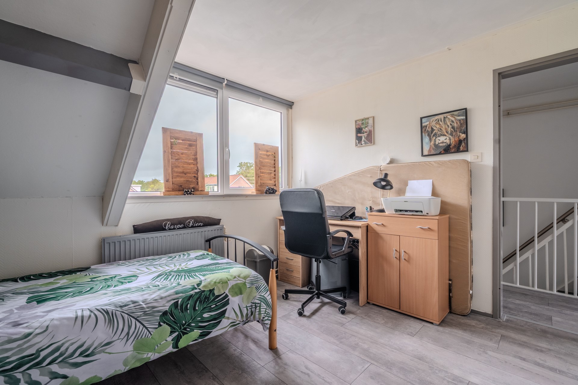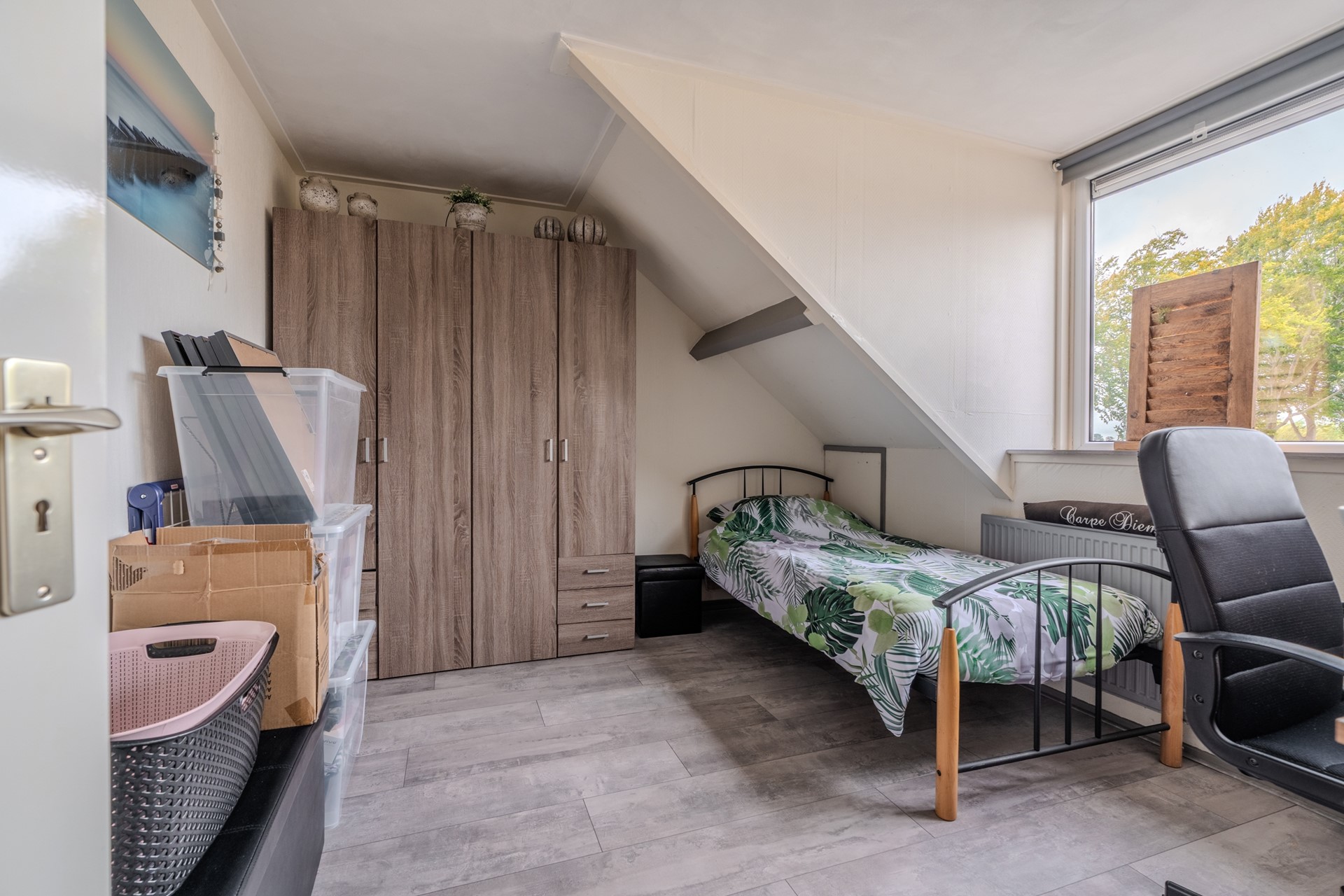 Op de eerste verdieping vindt u een overloop met twee slaapkamers en de badkamer. De grootste slaapkamer van ca. 13,5 m² is voorzien van airconditioning, wat zorgt voor extra comfort in de warme maanden. De tweede slaapkamer van ca. 10,4 m² heeft een dakkapel en biedt een gezellige, lichte ruimte. De badkamer is uitgerust met een wastafel met meubel, ligbad, douche en designradiator.