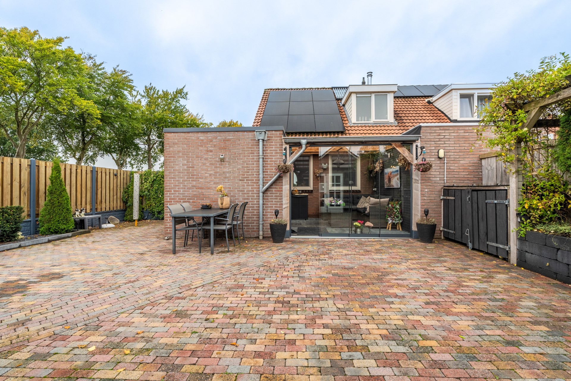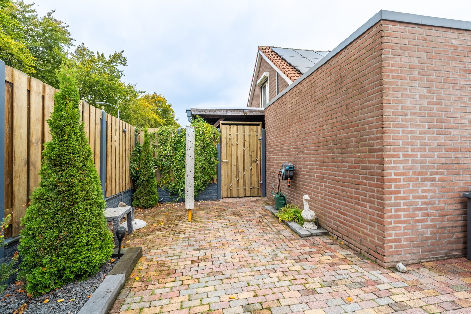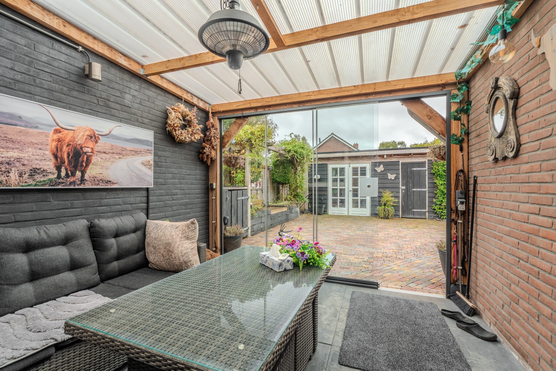 De woning beschikt over een aangebouwde carport, een gezellige overkapping, een vrijstaande houten berging en een besloten tuin op het zuidoosten: ideaal voor wie graag buiten leeft.