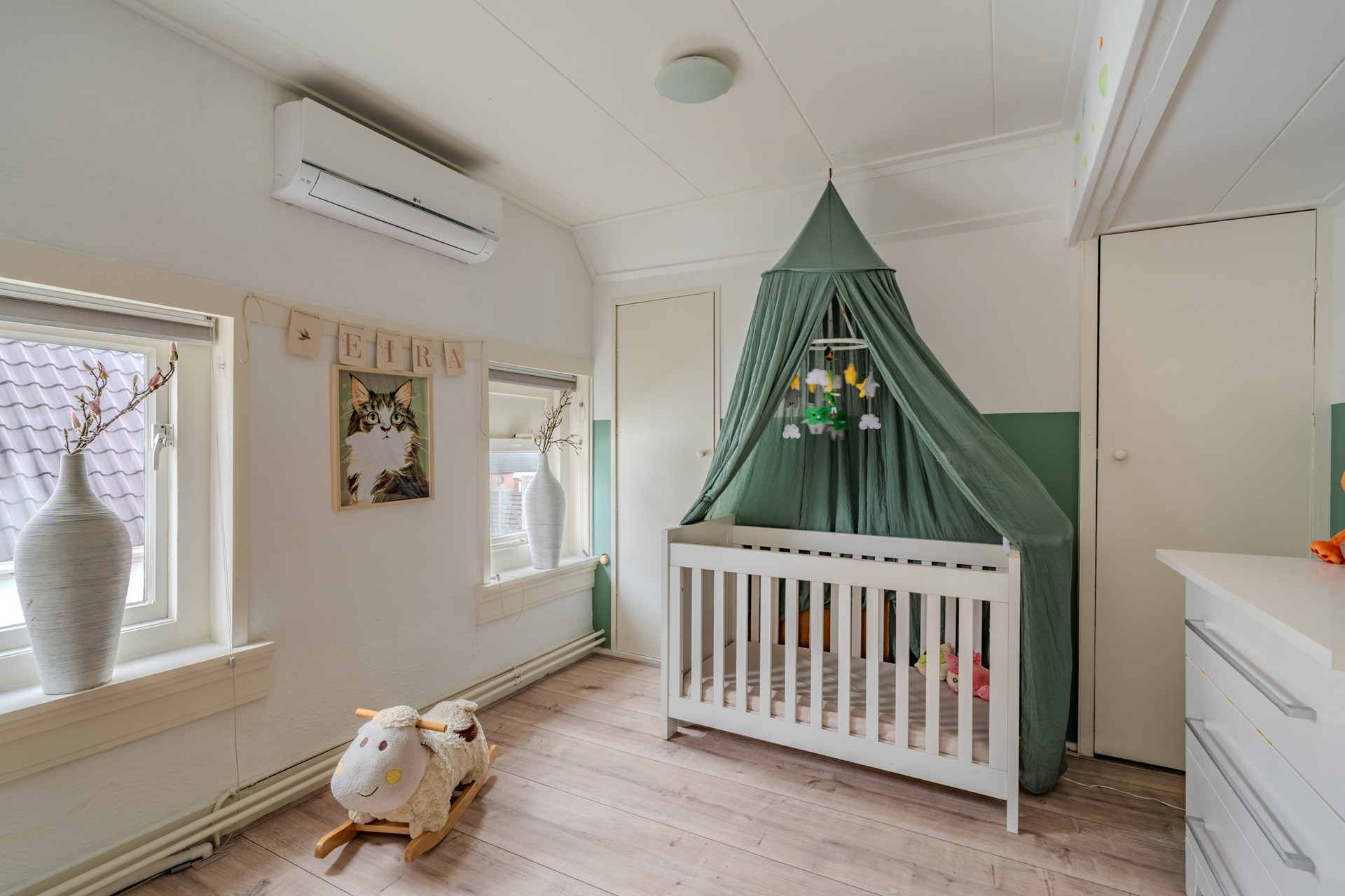 Dankzij de aanwezigheid van zowel een slaapkamer als een badkamer op de begane grond is de woning levensloopbestendig en uitstekend geschikt voor gelijkvloers wonen. Daarnaast hebben de huidige eigenaren de woning voorzien van drie LG-airco’s, wat zorgt voor een aangenaam en comfortabel binnenklimaat gedurende het hele jaar.