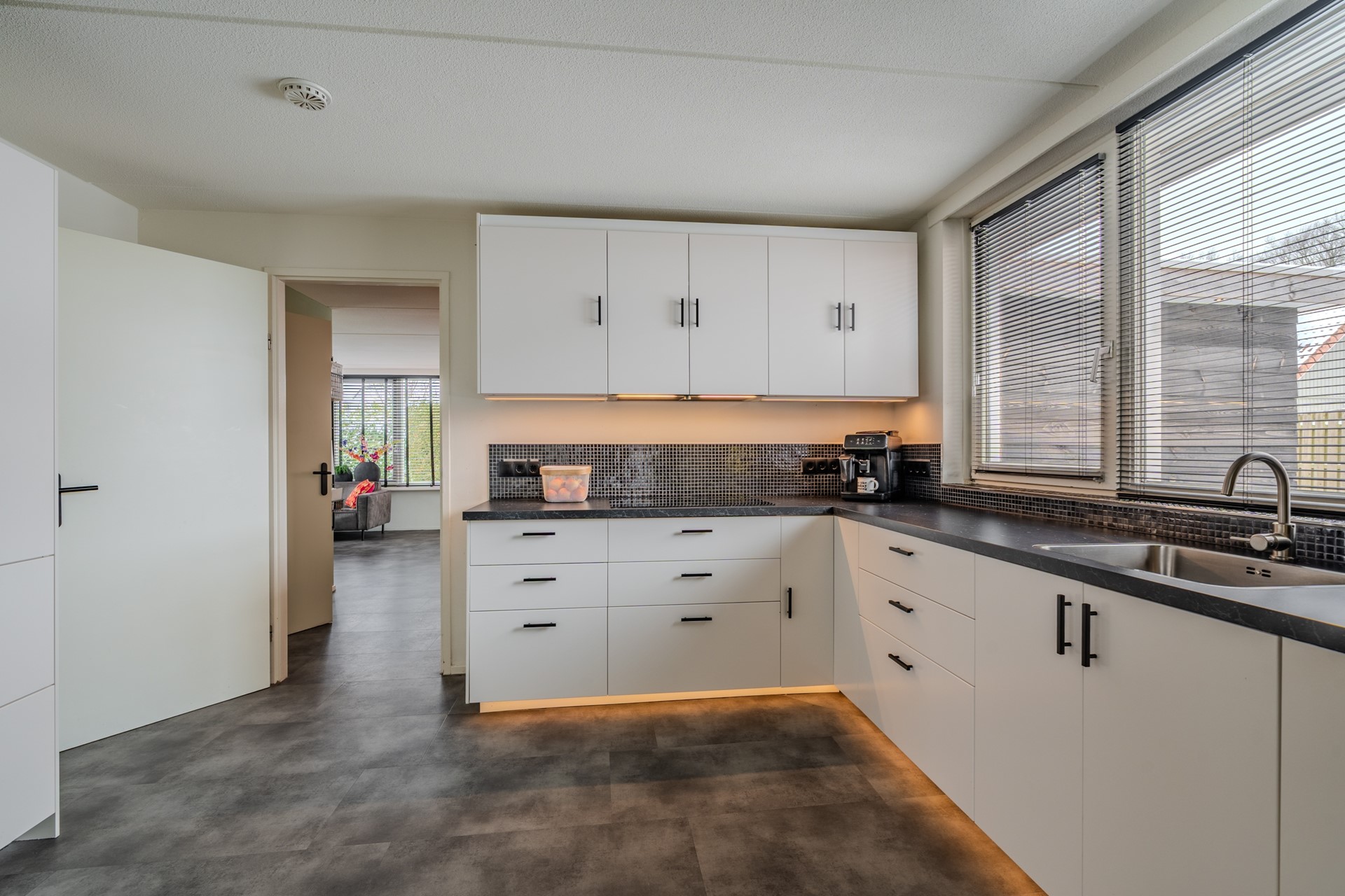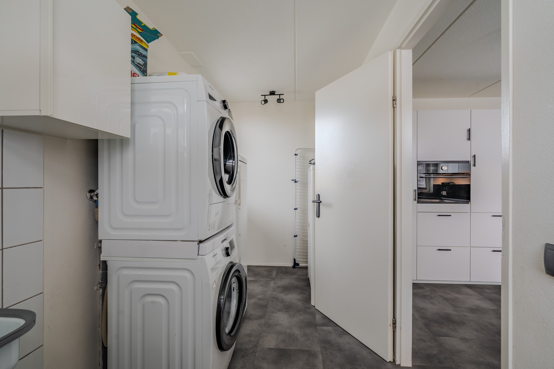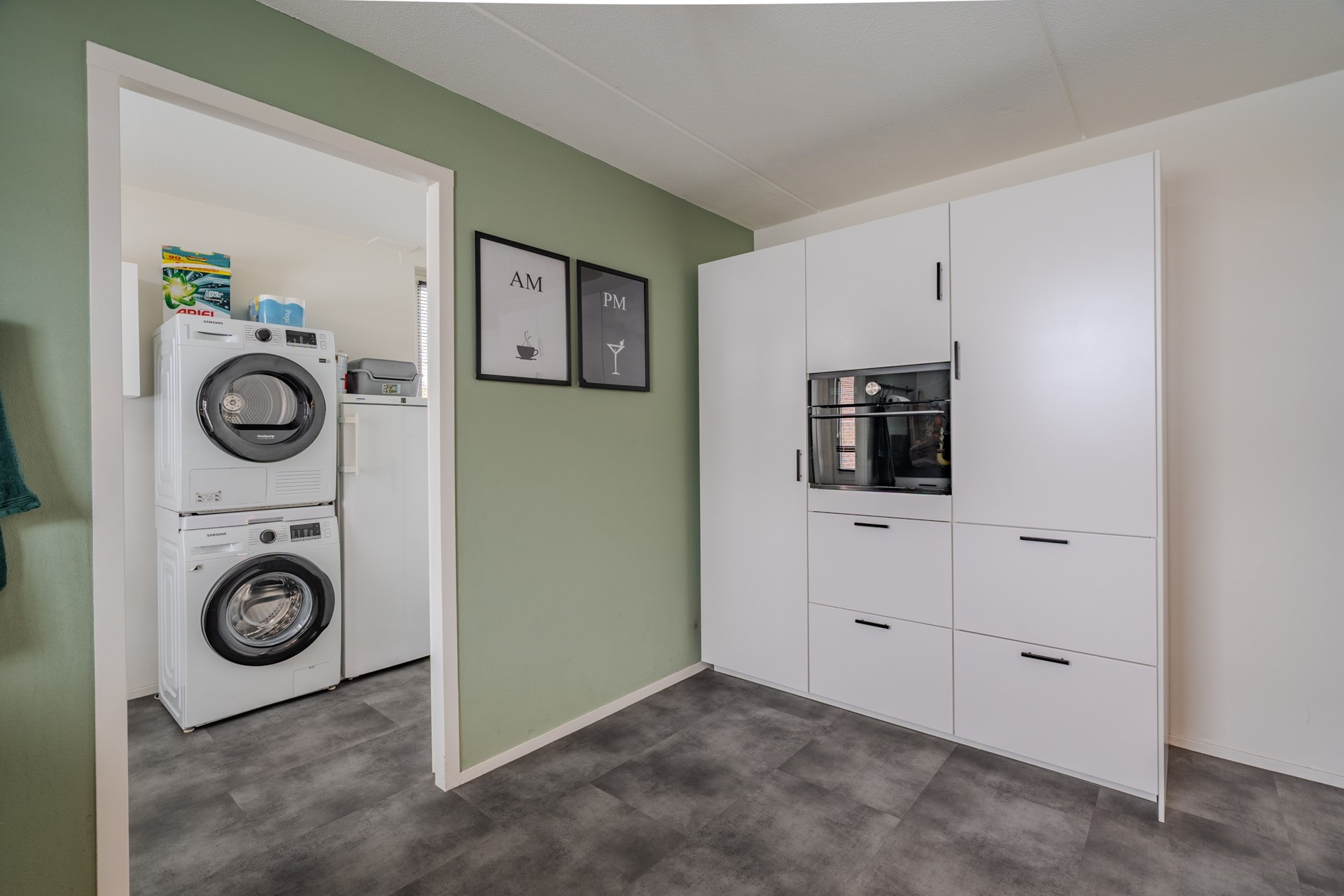 Aansluitend bevindt zich de bijkeuken met witgoedaansluitingen en toegang tot de achtertuin.