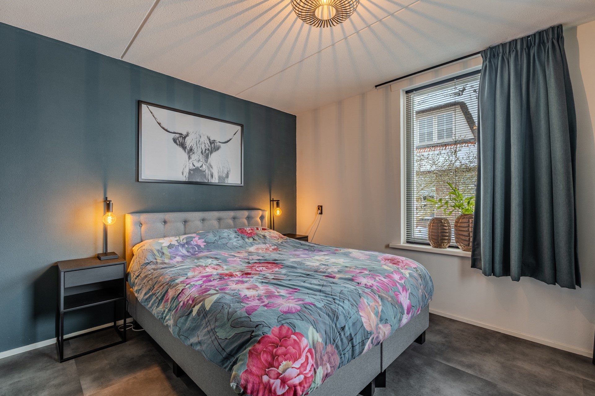 Via de voordeur betreedt u de entree/hal met meterkast, trapopgang naar de verdieping en toegang tot de toiletruimte, slaapkamer en de L-vormige woonkamer. De slaapkamer op de begane grond is circa 13,6 m² groot.