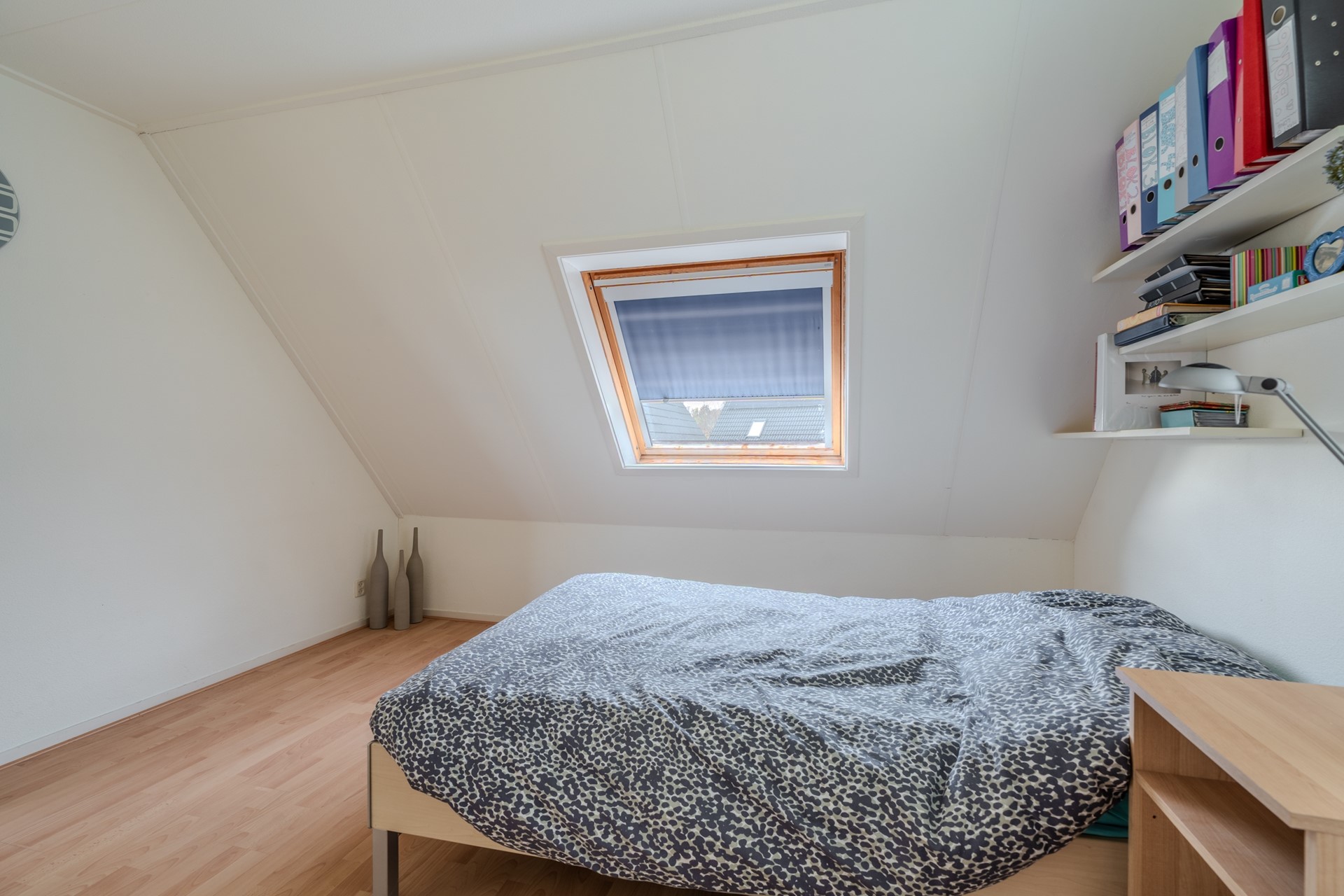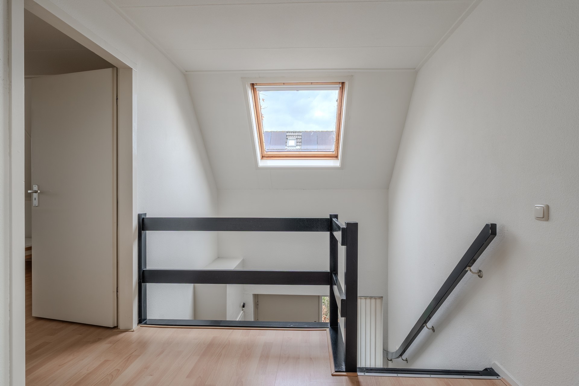 Via de overloop, voorzien van een luik met vlizotrap, bereikt u drie slaapkamers en de badkamer. De drie slaapkamers hebben een oppervlakte van respectievelijk circa 9 m², 12,4 m² en 16,7 m². De badkamer is uitgerust met een douche, ligbad, wastafel met meubel en een wandcloset.