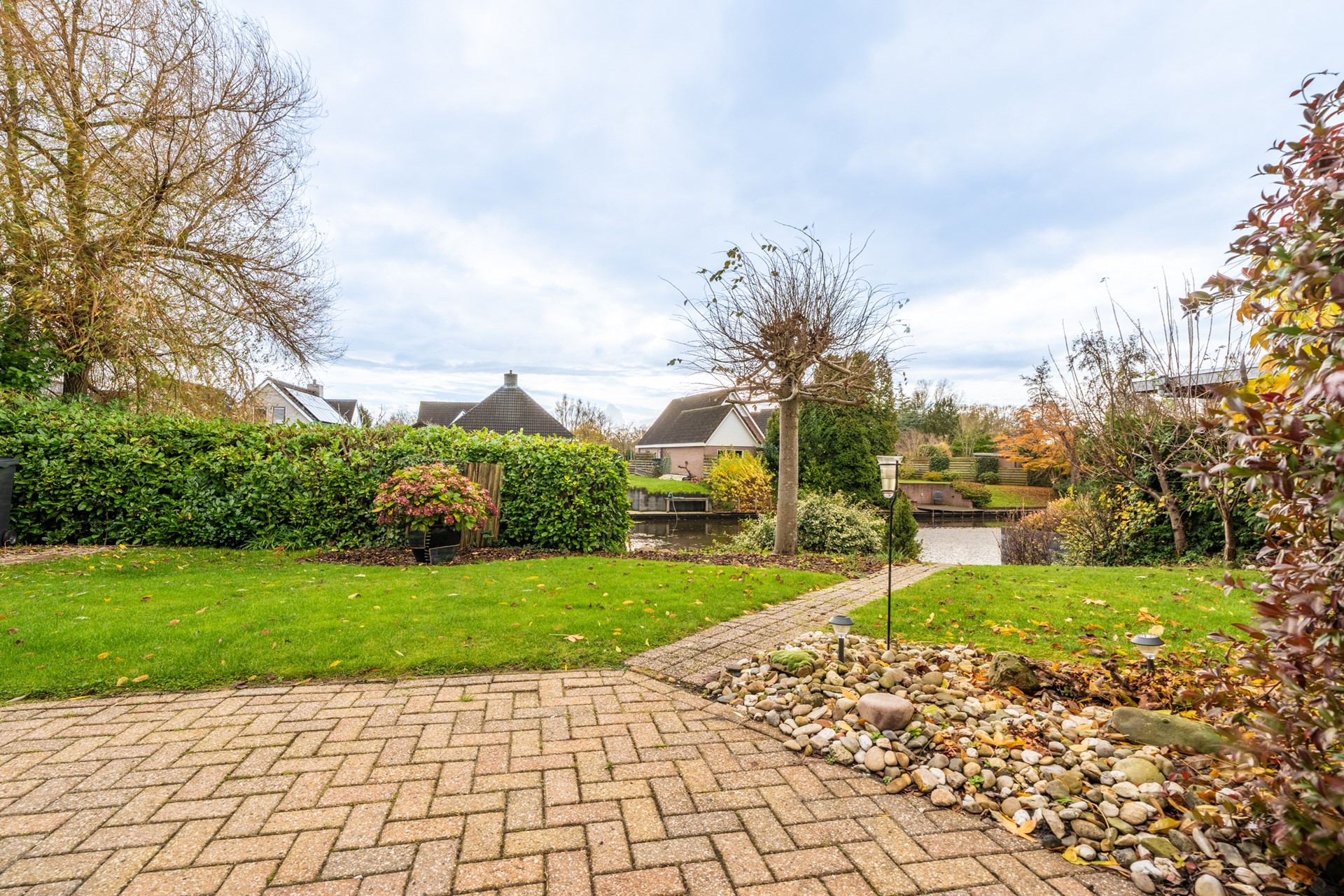 Het geheel is voorzien van een verzorgd aangelegde tuin op het zuiden, met meerdere terrassen en een diversiteit aan sierbeplanting. Aan de achterzijde van de kavel bevindt zich een houten steiger aan het water, gelegen over de volledige breedte van het perceel.
