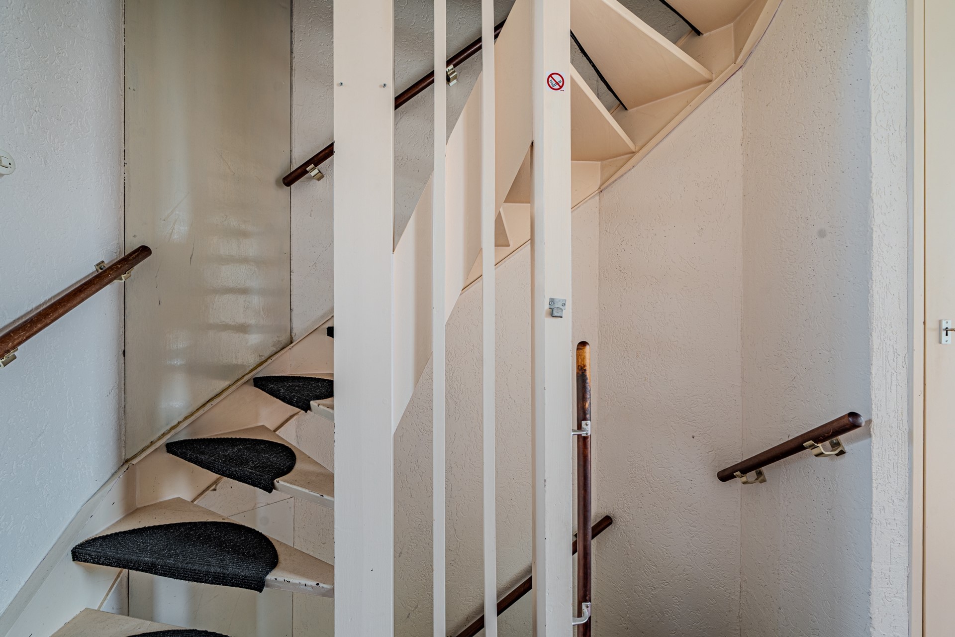 De hal beschikt daarnaast over een toiletruimte en een vaste trap naar de verdieping.