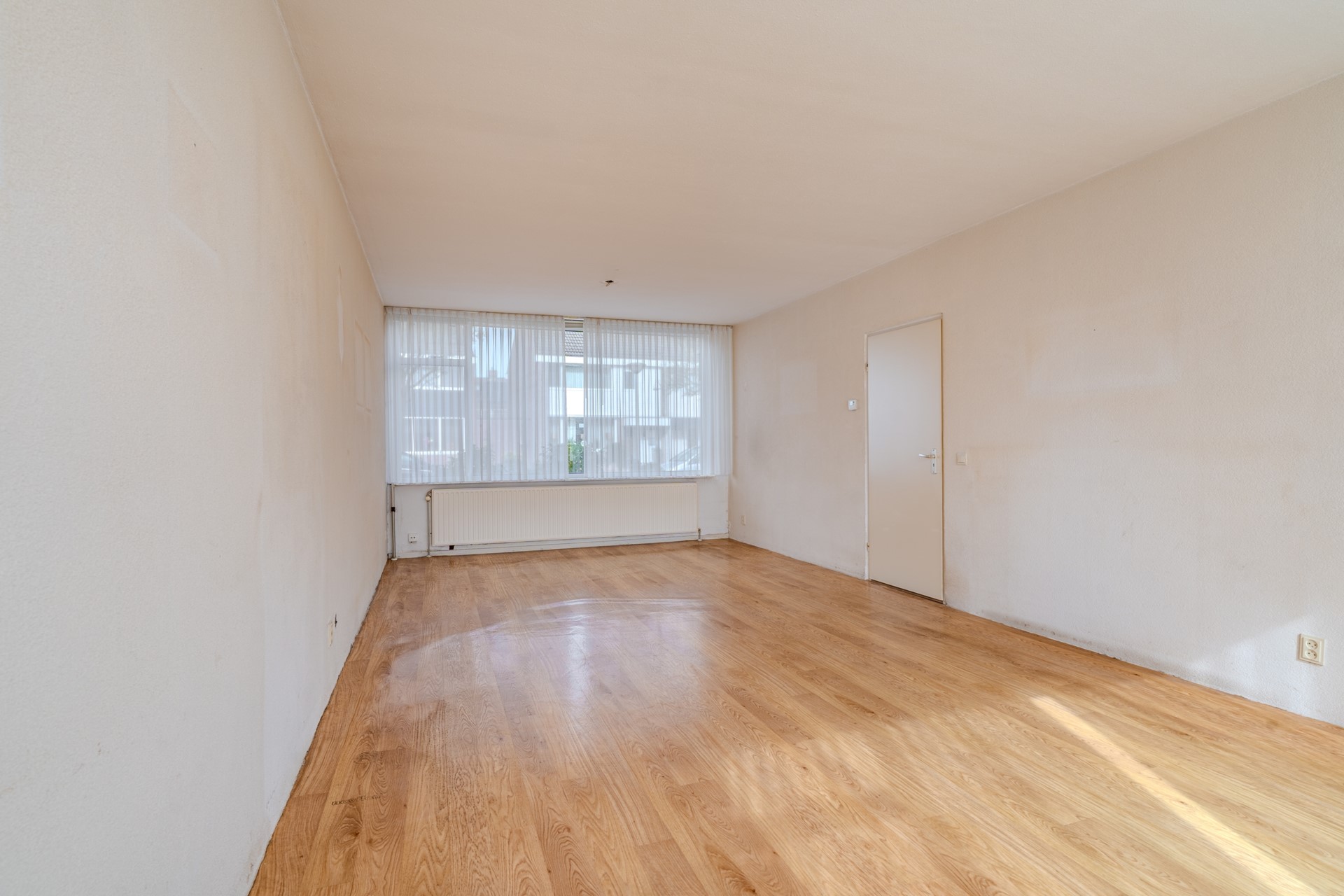 De ruime en lichte doorzonwoonkamer heeft een oppervlakte van ca. 32,6 m² en biedt een prettige leefruimte. De gesloten keuken is eenvoudig uitgevoerd en voorzien van een 4-pits gaskookplaat, afzuigkap, oven en spoelbak. Vanuit de keuken heeft u toegang tot de achtertuin.